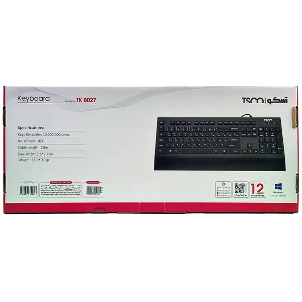 کیبورد تسکو مدل TK 8027 یک کیبورد سیمی فولسایز است که برای کاربریهای اداری و خانگی طراحی شده و با ۱۰۳ کلید استاندارد، تجربه تایپ راحت و روانی را برای کاربر فراهم میکند. این کیبورد به سوییچهای ممبران نرم و کمصدا مجهز شده است که تایپ بدون سر و صدایی را در محیطهای کاری فراهم میکند. پایههای ضد لغزش و قابل تنظیم این محصول، امکان تغییر زاویه کیبورد را متناسب با نیاز کاربر فراهم میکنند و از حرکت ناخواسته آن روی میز جلوگیری میکنند. این مدل از طریق کابل ۱.۸ متری USB متصل میشود و از قابلیت Plug & Play پشتیبانی میکند، بنابراین بدون نیاز به نصب درایور، آماده استفاده خواهد بود. ۱۲ کلید میانبر کاربردی به کاربر این امکان را میدهد که به سرعت به تنظیمات صوتی، مرور اینترنت و کنترل مدیا دسترسی داشته باشد. بدنه از جنس پلاستیک ABS مقاوم، طول عمر بالا و مقاومت مناسبی در برابر ضربهها و استفاده مداوم دارد. سازگاری با اکثر نسخههای ویندوز نیز این محصول را به گزینهای کاربردی برای طیف وسیعی از کاربران تبدیل کرده است.در مجموع، TK 8027 تسکو گزینهای مقرونبهصرفه و بادوام برای افرادی است که به دنبال یک کیبورد استاندارد با کیفیت مناسب و قابلیتهای کاربردی هستند.